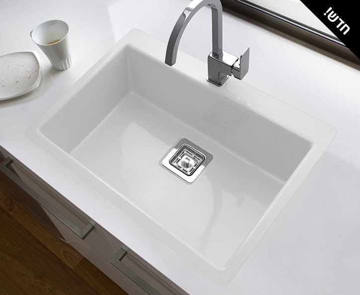 כיור מטבח יוקרתי התקנה שטוחה. מסופק בסטנדרט עם קדח אחד באמצע. בהזמנה מיוחדת ניתן לספק קדח שני בצד ימין.